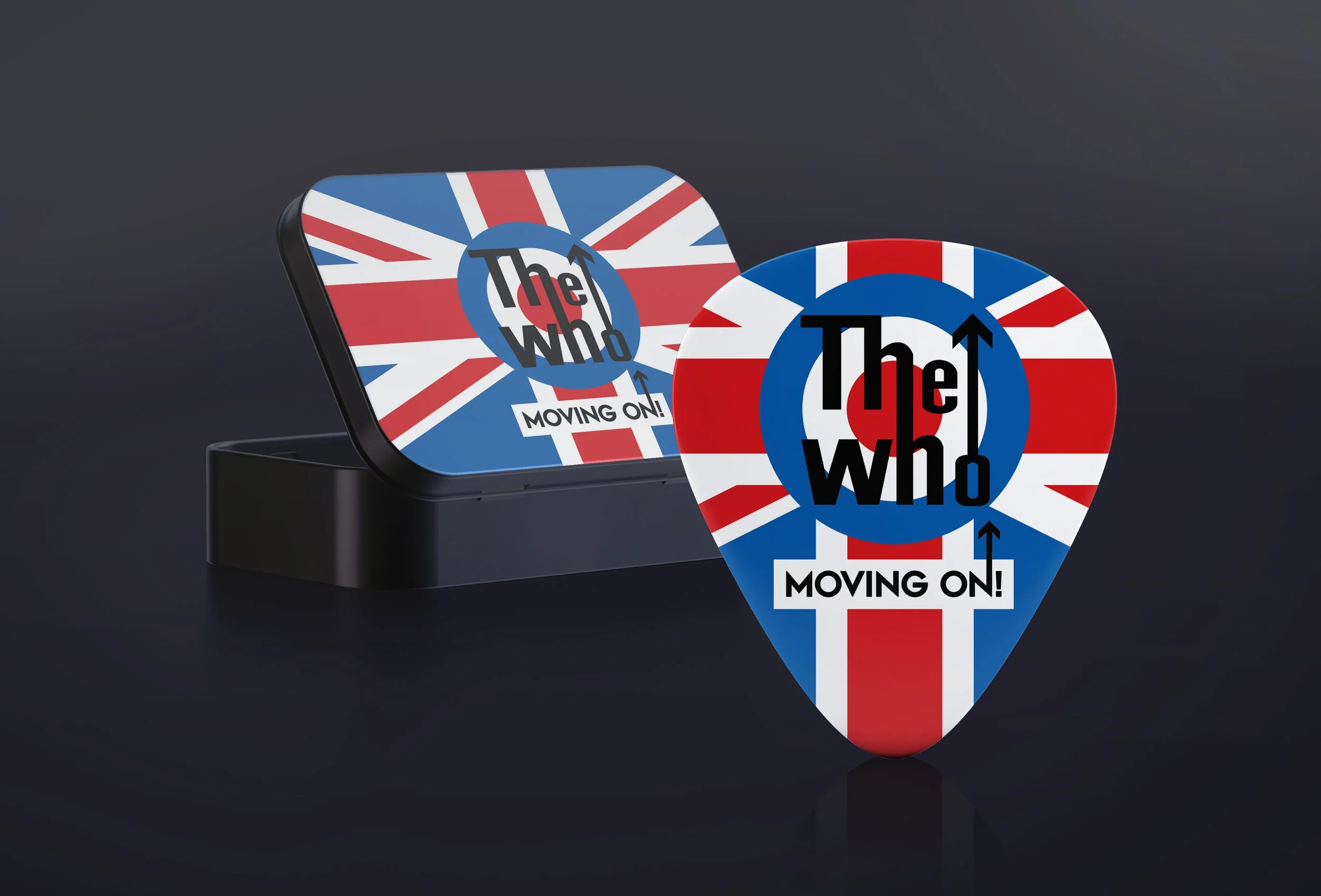 Custom guitar picks and tin case created for the VIP members of The Who’s “Moving On!” tour. Initially the ad agency just wanted to shrink down and crop their poster onto their guitar pick. I explained to them how the details would get lost and offered this elegant solution which they accepted.